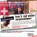 Nachdem Dominique Strauss-Kahn in den Sonntagsmedien vorläufig nichts mehr hingibt, visualisiert die SVP Ivan S. in Inseraten. S. soll ausgeschafft werden, doch die Linken verhindern angeblich die Umsetzung der Ausschaffungsinitiative. Er sieht, mit einem Balken abgedeckt, etwa so aus, wie ein Zuhälter aus St. Pauli in einem alten Tatort.