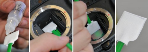 Methode Drei sind die Swaps (die Pinsel-Methode). Die Pinsel sind hermetisch verpackt und dürfen nur einmal eingesetzt werden. Sie haben verschiedene Breiten, die der Sensorhöhe entsprechen und mit dem Crop-Faktor bezeichnet sind: