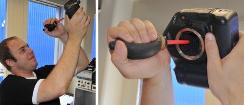 Wir haben uns an einen Spezialisten gewandt, für den das Sensorreinigen zum Alltag gehört: Raphael Müller, Techniker bei Sertronics, ein Dienstleistungsunternehmen, das unter anderem Kamerareparaturen für Canon, Sony und andere Marken ausführt. «Oft sehe ich der Kamera schon äusserlich an, wie stark der Sensor verunreinigt ist» sagt Raphael. Will heissen: eine Kamera, die in einer staubreichen Umgebung eingesetzt wird, ist eben auch innerlich stärker verschmutzt als eine, die wenig gebraucht wird und kaum dem Staub ausgesetzt ist.