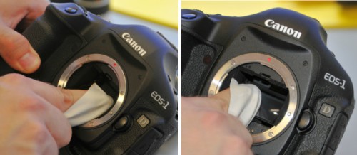 Bevor man mit der Sensorreinigung beginnt, muss der Arbeitsplatz ,möglichst staubfrei sein und die Kamera muss äusserlich gereinigt werden. Dazu gehört auch das Reinigen des Spiegels, was vorsichtig mit einem Mikrofasertuch geschieht