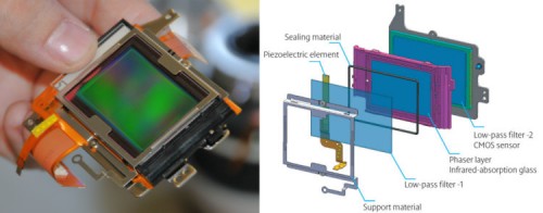 Nun gibt es ja Kamera mit einem eingebauten Vibrator, das heisst mit einem Piezoelement, welches den Sensor beim Einschalten leicht in Schwingung versetzt, damit die Staubpartikel abfallen und auf einem Klebeband unterhalb des Sensor aufgefangen werden. Ob dies sehr effizient ist? «Das mag für kleine Staubpartikel eine gewisse Wirkung haben» meint Raphael. «Aber die wirklich dicken Brocken, die man auch auf dem Bild sieht, können damit kaum abgeschüttelt werden. Da hilft nur die gelegentliche Sensorreinigung.»