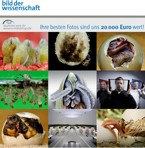 Bereits zum 6. Mal schreibt die Zeitschrift «Bild der Wissenschaft» den «Deutschen Preis für Wissenschaftsfotografie» aus. Der jährliche Wettbewerb richret sich an Forscher und Wissenschaftsfotografen und ist mit einer Preissumme von 20’000 Euro dotiert.