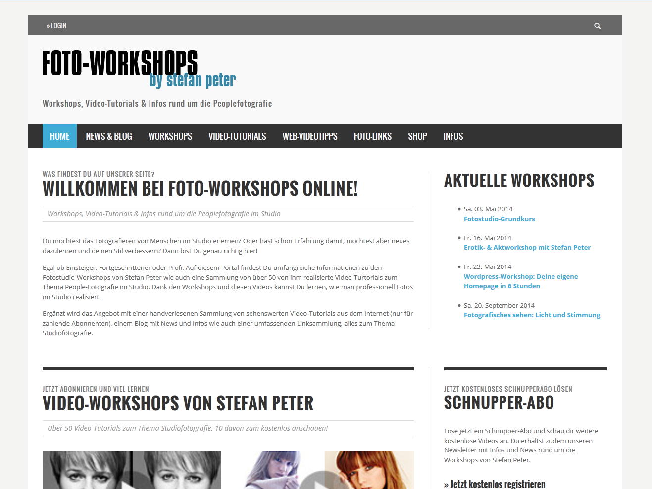 Auf der Website von Stefan Peter finden Sie nicht nur umfassende Informationen zu den einzelnen Foto-Workshops, sondern auch eine umfassenden Linksammlung und einem Blog mit News und Infos zum Thema «People-Fotografie im Studio». Ausserdem gibt es eine sehenswerte Sammlung von über 50 von ihm realisierten Video-Tutorials, die anschaulich zeigen, wie professionelle People-Fotografie im Studio gemacht wird. Einige dieser Videos lassen sich sogar kostenlose anschauen. Für wenig Geld lässt sich zudem ein Abo lösen, mit dem alle der über 50 Videos betrachtet werden können.