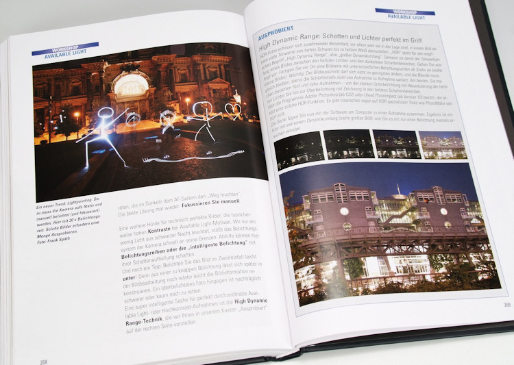 Nicht zu überblättern sind die nützlichen «Mini-Workshops» und «Ausprobiert»-Kasten. Das sind kurze in sich geschlossene Abhandlungen über bestimmte Themen wie beispielsweise «Gesichtserkennung und -Registrierung», «Rauschen bei verschiedenen ISO-Werten» oder «Weissabgleich am Computer setzen», welche das Buch mit Zusatzwissen aufwerten.