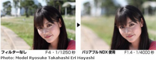 Kenko-Tokina informiert auf ihrer Webseite über einen variablen Graufilter, der Belichtungverlängerungen von 1,3 bis 10 Belichtungsstufen bewirkt. Damit kann bei korrekter Belichtung eine grössere Blende oder eine längere Belichtungszeit erzielt werden, um eine Unschärfe in der Bildtiefe (Bokeh) oder Bewegungseffekte zu erreichen.