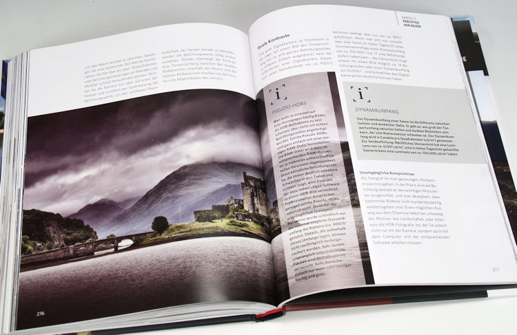 Beachtlich übrigens, dass die rund 300 Bilder mehrheitlich von Christian Haasz stammen und nicht nur typisch zu den Textteilen ausgesucht wurden, sondern eben auch die fotografische Kompetenz des Autors beweisen. Es sind mehr als nur Beispielbilder zu den abgehandelten Begriffen – vor allem inspirieren die Bilder und spornen an, das Gelesene in die Praxis umzusetzen. Dazu bietet Christian Haasz eine fast uferlose Fülle von Praxistipps, die manchmal etwas im Text untergehen und mit einer grafischen Auszeichnung auffälliger zur Geltung kommen würden.