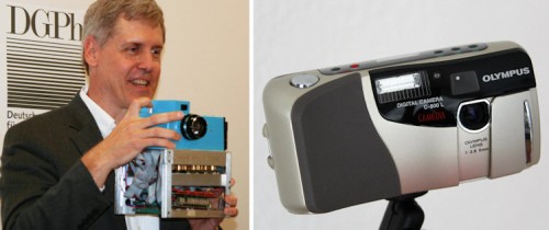 1976 Steven J. Sasson von Eastman Kodak Co., Rochester, N. Y., USA, konstruiert die erste digitale Fotokamera. Er erhält dafür 2008 den Kulturpreis der DGPh. REchts: 1995/1996 Erste Digitalkameras verschiedener Hersteller für Amateure, noch mit Festspeicher, werden eingeführt. Das ist der Beginn des Siegeszugs der Digitalphotographie.