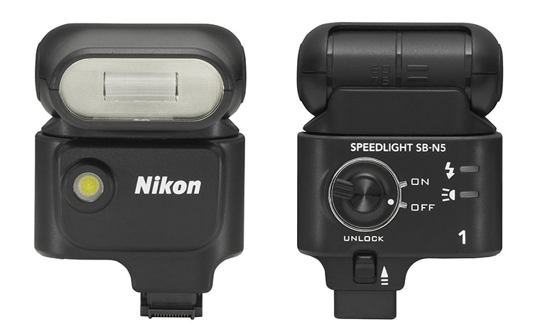 Blitz: Das kleine Aufsteckblitzgerät SB-N5 ermöglicht das Steuern der Richtung und Qualität des Lichts sowie kreative Aufnahmen mit indirektem Blitzlicht, indem sich das Blitzgerät gegen die Decke oder Wand richten lässt.
