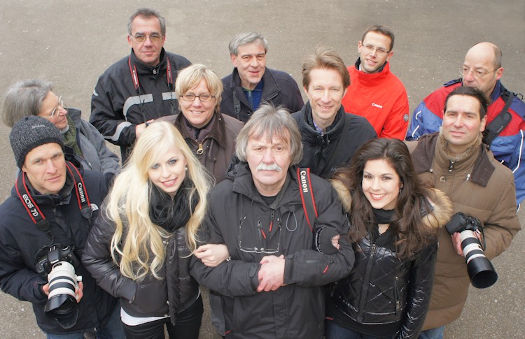 Die Teilnehmenden des Diplomlehrgangs mit Kursleiter Jürgen Denter und zwei hübschen Fotomodellen
