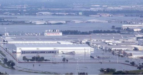 Wichtige Industriekomplexe, wie hier das Honda-Werk in Ayutthaya, stehen metertief unter Wasser.