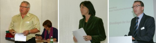 Die Referenten: Alex Mächler, Präsident des VFS, Marianne Glutz von der Schule für Gestaltung Zürich und Andres Meerstetter vom Mittelschul- und Berufsbildungsamt des Kantons Zürich