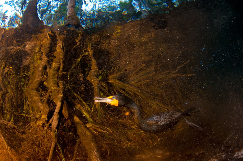 In der Kategorie Vögel gewann das Bild «Ohrenscharbe unter Wasser – Amerikaanse aalscholver onderwater» des Belgiers Dennis Vandermeersch.
