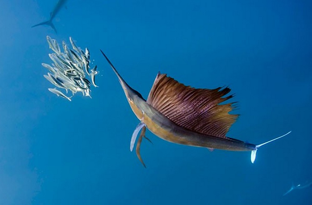 In der Kategorie Unter Wasser siegte Magnus Lundgren aus Schweden mit dem Bild «Schwertfisch bei der Jagd – Segelfisk jagar»
