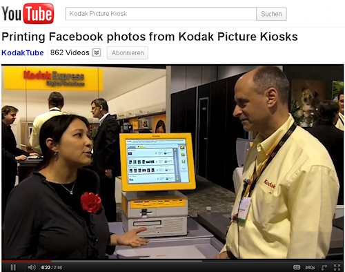 Kodak hat ihre Picture Kiosk Software überarbeitet und die Version 5.0 verstärkt auf die Bedürfnisse von Facebook (und andere Sozialnetzwerken) ausgerichtet. Mit der vielfältigen Software können Konsumenten beim Fotohändler ihre Bilder aus Facebook und Co. einfach und schnell herunterladen, bearbeiten, drucken und sofort mitnehmen.