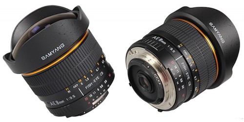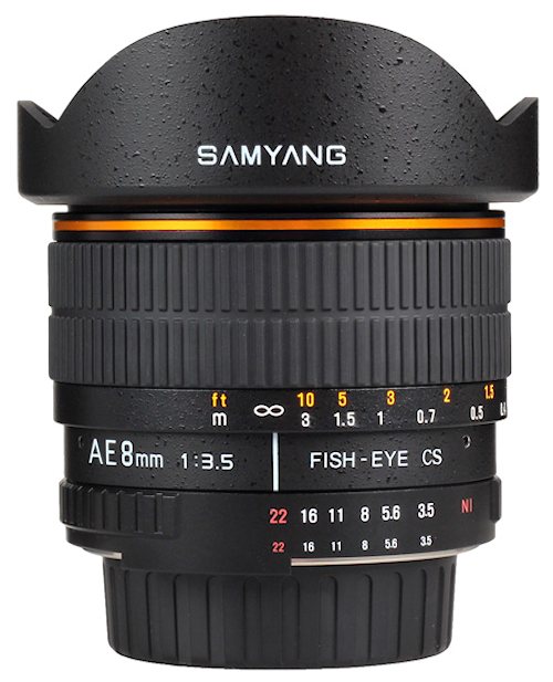 Die neue Auflage des Samyang AE 1:3.5/8mm Aspherical IF MC Fish-eye CS ist mit Nikon-Anschluss mit einem Mikroprozessor ausgestattet, welcher die Benutzung der Automatikfunktionen mit Nikon-Kameras ermöglicht. Dazu gehört die volle Kontrolle über die Belichtungssteuerung mit den Automatikfunktionen, sowie das Blitzen mit der i-TTL-Funktion. Da das Objektiv von der Kamera elektronisch erkannt wird, werden auch die Aufnahmedaten als Exif-Daten abgelegt. Das extreme Fisheye-Objektiv ist für Kameras mit APS-C/DX-Sensor berechnet. Es besteht aus zehn Linsen in sieben Gruppen, inklusive einer Hybrid-Asphäre zur Korrektion der chromatischen Aberration.