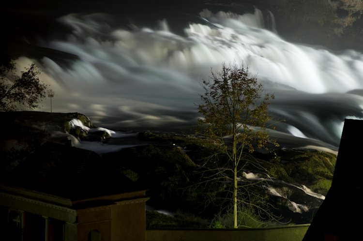 Das ist ja eigentlich naheliegend – im doppelten Sinn. Es ist schon ein besonderer landschaftlicher Anreiz, dieser 23 Meter hohe und 150 Meter breite Wasserfall, wo pro Sekunde etwa 400 Kubikmeter Wasser über die Klippe donnern. Das Besondere daran sind die Lichtstimmungen, vor allem morgens, wenn sich der Fall und sein Hinterwasser im Gegenlicht präsentiert oder abends, wenn der flache Sonnenstand den Fall allmählich in ein fahles Abendrot tüncht. Wenn es dann noch etwas neblig ist oder wenn die Gischt mit der Sonne zu spielen beginnt, gibt das faszinierende und einzigartige Bilder. Der Rheinfall ist eigentlich jeden Tag und jede Stunde wieder anders …