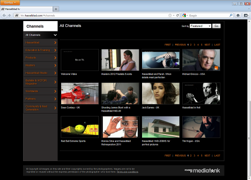 Hasselblad tv bietet mehrere Themenbereiche als Kanäle bzw. channels. Die Videos liegen je nach Herkunftsland in einer bestimmten Sprache vor, wogegen die Lehr- und Schulungsvideos oft in mehreren Sprachversionen vorhanden sind.