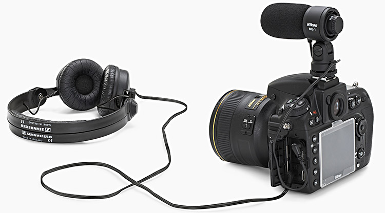 Nikon D800 mit Mikrofon und Kopfhörer