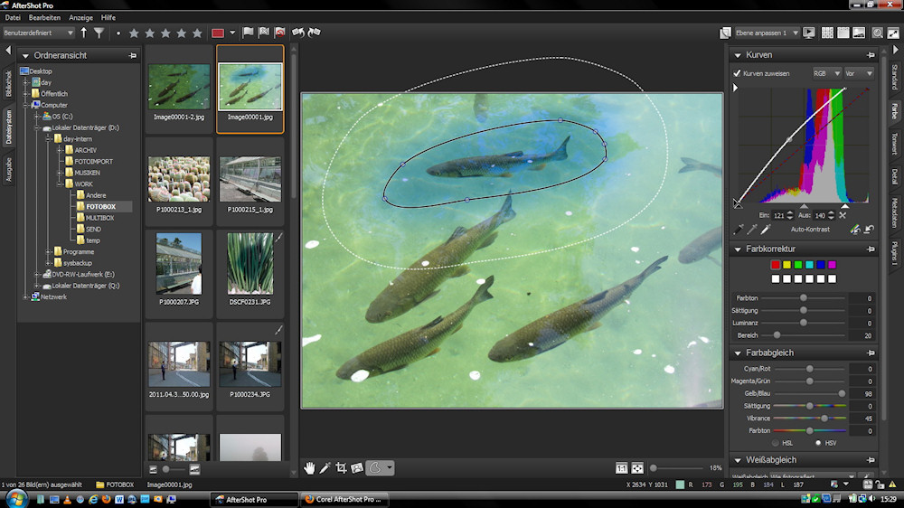 AfterShot-pro erlaubt das Verwalten der eigenen Fotosammlung sowohl in den Ordnern, als auch in virtuellen Katalogen. Die Stärken des Programms liegen aber eindeutig bei der Bildbearbeitung. Zahllose Werkzeuge und Regler für alle nur erdenklichen Manipulationen stehen zur Verfügung. Sogar ein partielles Bearbeiten der Aufnahmen mit einer Ebenen-Struktur fehlt nicht. AfterShot-pro ist ein eindrückliches Programm, dem ich einen grossen Erfolg durchaus zutrauen würde. Leider konnte meine installierte Version 1.0 weder PSD noch DNG Dateien anzeigen. Beim Durchstöbern von den diversen Foren, bin ich immer wieder auf diese Eigenart gestossen. Das muss wohl ein Programmfehler sein, der hoffentlich mit dem nächsten Update behoben werden kann.
