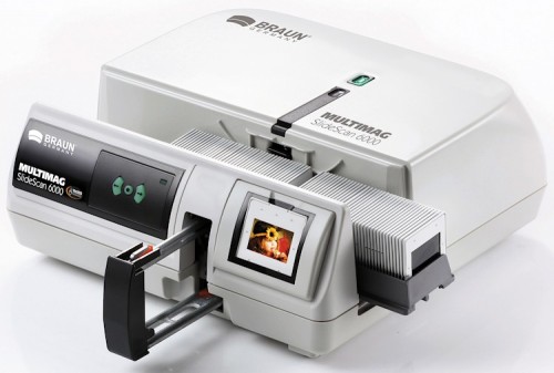 Der neue Braun Multimag SlideScan 6000 scannt Dias und Negative mit einer Auflösung von 5000 ppi in einer Farbtiefe von 48 Bit. Die Dia-Vorschau erfolgt direkt am Gerät, und die «Magic Touch»-Software sorgt für die automatische Staub- und Kratzerentfernung.