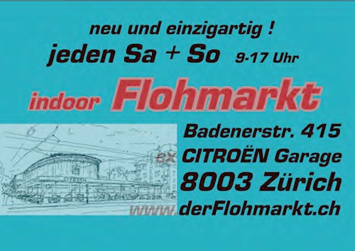 Die Organisatoren des BELLTREE – TOWER Flohmarktes haben eine neue Lokalität gefunden, in welcher sie vom 25. Februar bis 25. März 2012 an jedem Wochenende einen Flohmarkt durchführen wollen. Die Flohmärkte finden in der ehemaligen Citroën-Garage an der Badenerstrasse 415 in 8003 Zürich statt, die sich durch folgende Besonderheiten für diese Anlässe bestens eignet: