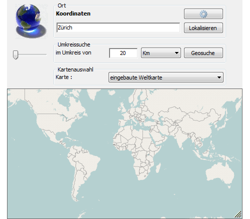 Sind im Foto bzw. in den Exif-Daten zusätzlich die Aufnahmekoordinaten verzeichnet, steht mit dem Geofinder auch eine Funktion zur Verfügung, um weitere Fotodateien vom gleichen Ort zu finden, oder die Fotos auf einer Karte im Programm oder im Internet (z.B. auf GoogleMaps) anzeigen zu können.