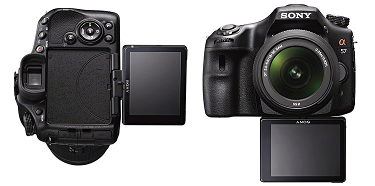 Sony gönnt der A57 einen neu entwickelten, elektronischen Sucher (EVF) mit hundertprozentiger Bildabdeckung und 1,4 Millionen Bildpunkten. Zu den Vorteilen des EVFs gehört, dass sich bei Bedarf verschiedene Informationen zu den Kameraeinstellungen oder eine digitale Wasserwaage und ein Gitterraster einblenden lassen. Wichtige Einstellungen können so gleich im Sucher abgelesen. Ebenso lassen sich auch die Aufnahmen im Sucher ansehen und kontrollieren.