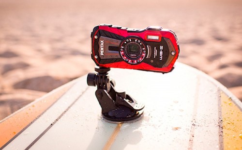 Die seit März 2012 erhältliche Kamera Pentax Optio WG-2 wird mit oder ohne GPS-Funktion (Geotagging) geliefert. Konstruiert für den harten Einsatz ist sie vor Fallschäden (1,5 m Fallhöhe) geschützt, hält den Druck von 100 kg aus und ist bis zu einer Tauchtiefe von 12 Metern ausgelegt. Auch Sand, Staub und Kälte (bis -10°C) machen der WG-2 nichts aus.