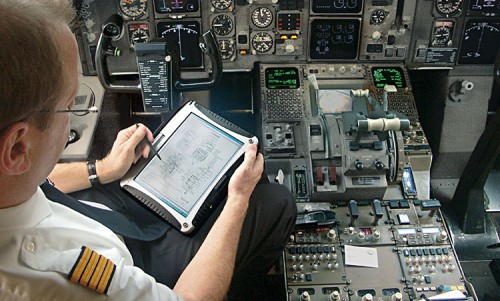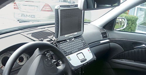 Zusammengelegt lässt sich der Tablet-PC gut zum Lesen von Dokumenten (Betriebs- und Reparaturanleitungen) und Abarbeiten von Checklisten verwenden.