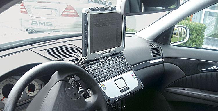 Um sicherzustellen, dass bestehende Kunden vorhandenes Toughbook-Zubehör weiterverwenden können, ist das CF‐19mk6 mit fast allen bisherigen Fahrzeughalterungen