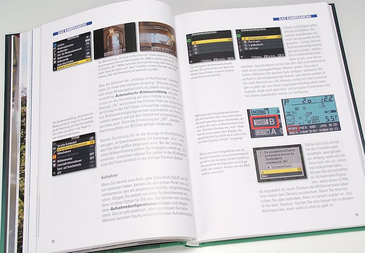 Was die Illustrationen anbelangt, zeigt Gradias mehr Praxisbilder; der Praktiker eben, während sich Hessler vor allem auf erklärende Menüabbildungen beschränkt. In einigen Fällen sind diese schon fast zu klein wiedergegeben – auf Seite 156 beispielsweise – so dass man kaum noch etwas erkennt. Ein 16er-Bogen mehr Umfang und damit eine etwas grosszügigere Gestaltung hätte dem Buch sehr gut getan.