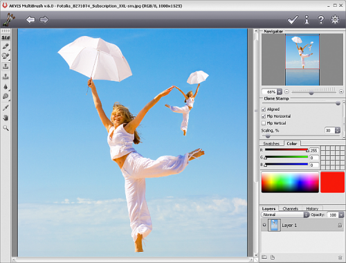 Akvis veröffentlicht ihr Mal- und Korrekturprogramm MultiBrush 6.0 Die Software bietet Pinsel und Stempel für die Retusche von Fotos und zum intelligente Klonen von Bildteilen. Neu kann der Klonstempel Bildteile auch gleich spiegeln und skalieren. Das deutschsprachige Programm für Mac OS X und Windows ist als CS6-kompatibles Plug-in und als Standalone-Anwendung erhältlich.