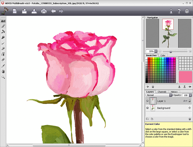 Multibrush ermöglicht auch das Malen mit Pixeln bzw. Kunsteffekte anzuwenden und stellt für die Kunsteffekte separate Ebenen zur Verfügung.