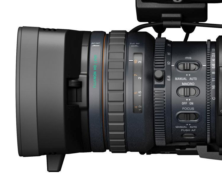 Der PMW-200 verfügt über ein eingebautes Fujinon-Zoomobjektiv mit einem 14fachen Zoombereich.