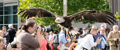 Das im photokina Rahmenprogramm integrierte Event «Weitblick» findet auf der Piazza statt, einem Freiplatz, der im direkten Zugang zum Eingang Süd liegt. Als Motiv von «Weitblick» präsentieren sich verschiedene Greifvögel, u.a. Adler mit einer Flügelspannweite von 2,30 m, die grösste einheimische Eule und Jagdfalken. Die eindrucksvollen Greifvögel und die spektakulären Flugshows sind über die fernoptischen Geräte von der Bühne aus ganz nah zu beobachten und sind ein zentraler Anziehungspunkt.