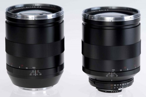Das neue Apo Sonnar T* 2/135 mit kompatiblen Anschlüssen für Canon (links) und Nikon (rechts)