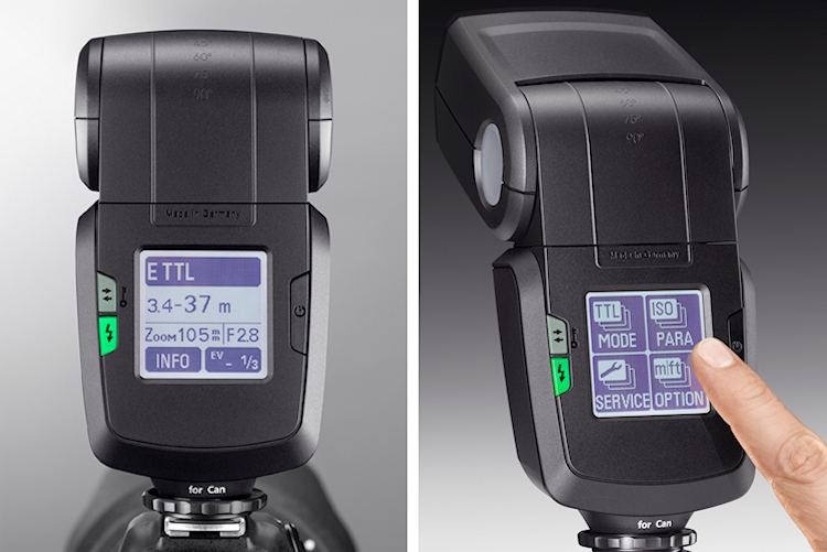 Neben der neu integrierten Masterfunktion stehen auch die Slave-Funktion und die Servo-Funktion zur Verfügung. Damit lässt sich das neue Premium-Blitzgerät je nach Kameramodell in unterschiedlichen Betriebsarten einsetzen. Bei der Servo-Blitzauslösung ist keine Masterfunktion der Kamera notwendig, um den Blitz als weitere kreative Lichtquelle im Raum zu verwenden. Bei der Master / Slave-Funktion kommt der kameraspezifische drahtlose TTL-Remote Betrieb der jeweiligen Modelle zum Einsatz.
