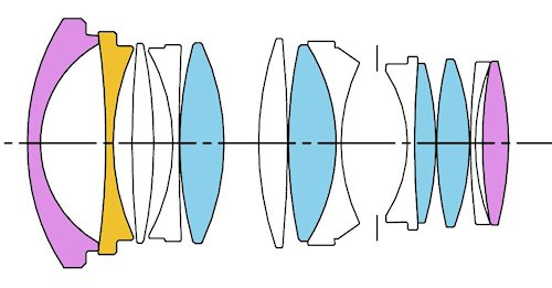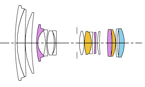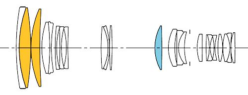 Objektivkonstruktion: 16 Elemente in 14 Gruppen