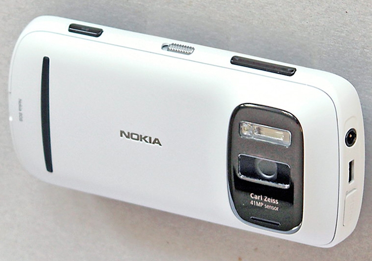 Das Handy ist in Zusammenarbeit mit Carl Zeiss entwickelt worden, was der Carl Zeiss Schriftzugam Kamerateil dokumentiert. Die Brennweite von 8.02mm entspricht bei Kleinbild einem Weitwinkel von 28mm. Das Carl Zeiss Tessar Linsensystem besteht aus fünf Glaselementen mit asphärischen Oberflächen und das komplette Objektiv weist eine Lichtstärke von 1:2.4 auf. Der Aufnahmebereich für die Distanzeinstellung erstreckt sich von 15cm bis Unendlich. Der integrierte Xenon Blitz verhilft bei wenig Licht zu gut ausgeleuchteten Bildern. Zusammen mit den Bilddaten im JPEG-Format werden auch EXIF und GPS Informationen abgespeichert. Durch die mechanischen Tasten für Auslösung und Zoom, lässt sich das Nokia 808 wie eine Kompaktkamera bedienen.