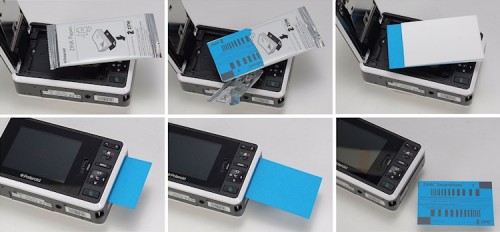 Das Druckmedium ist von der Technologie her dasselbe wie bei der Z340 geblieben, nur das Format ist – wie bereits erwähnt – kleiner: 7,6 x 5 cm bei der Z2300 gegenüber 10 x 7,6 cm bei der Z340. Das Printmaterial ist ebenfalls in 10er-Einheiten abgepackt und kalibriert mit einem blauen Deckblatt mit Strichcode nach jedem Einlegen einer Zehnerpackung in die Kamera (blaues Deckblatt nach unten) den Drucker neu. Damit werden offensichtlich Produktionsschwankungen korrigiert.