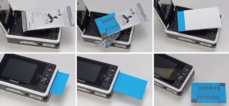 Das 10er-Pack des Zink-Printmaterials wird mit dem blauen Kalibrierblatt nach unten in die Kamera eingelegt