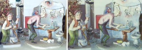 Links das digitale Bild, rechts der Ausdruck des Zink-Bildes
