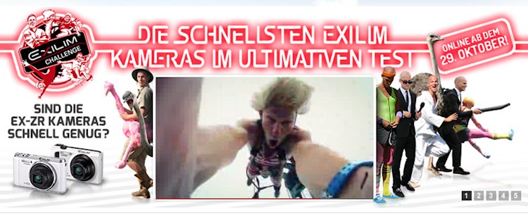 Am 29. Oktober 2012 startet Casio online die «Exilim Challenge» mit dem rasenden Reporter Delf Deicke. Dabei wird sich Delf Deicke sechs verschiedenen, Action geladenen Challenges stellen. Sprünge durch Glasscheiben oder der Kampf mit einem Strauss zählen hier unter anderem zu den Herausforderungen. Die Frage: Können die Exilim ZR-Kameras die besten Momente der Challenge einfangen?