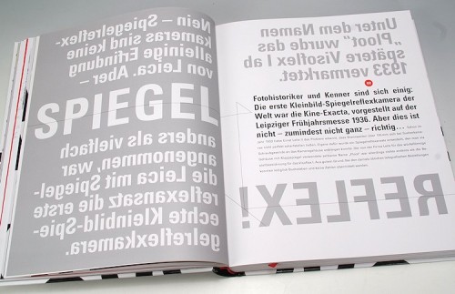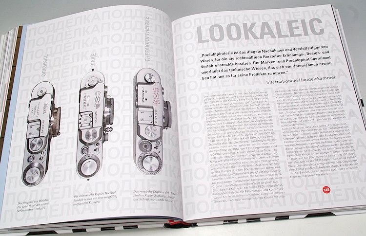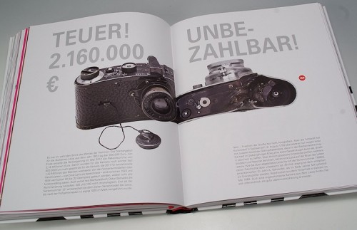 Eine besondere Beachtung verdient auch die grafische Gestaltung des Buches. Sie ist jung, frisch, grosszügig und bricht mit allen Traditionen – passend zum neuen Image der Traditionsmarke. Sie bringt keine briefmarkenkleinen Bilder, sondern sie zeigt doppelseitig eine Notizbuchseite von Oskar Barnack oder der verglühten Leica aus dem Wrack der «Hindenburg».