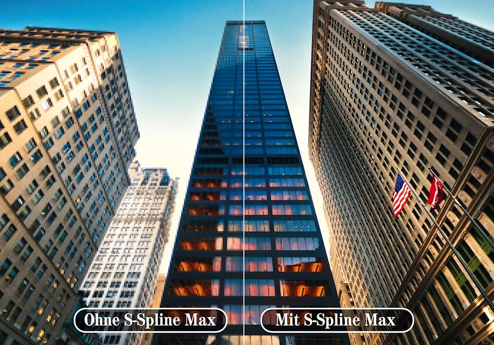 Das Problem bei normalen Vergrösserungen über die gegebene Auflösung hinweg sind in der Regel unansehnliche Artefakte und Klötzchenbildung an Ecken und Kanten. Dank der überarbeiteten S-Spline Max Technologie, die die fehlenden Informationen für die Vergrösserung realistisch errechnet, bleiben Kanten scharf und Detail-Strukturen erhalten.
