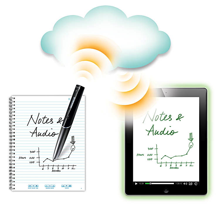 Alle Inhalte, die man mit dem Sky wifi smartpen anfertigt oder aufzeichnet, werden kabellos mit dem zugehörigen Evernote-Konto synchronisiert und dort als durchsuchbare und teilbare Notiz abgelegt. Vom Evernote-Konto aus können Nutzer ihre Notizen und Sprachaufnahmen mit dem neuen Web-basierten Livescribe Player wiedergeben. Dieser ermöglicht es, Pencasts vollständig abzuspielen oder die Wiedergabe an bestimmten Stellen zu starten – ganz einfach per Fingerzeig auf das entsprechende Stichwort.
