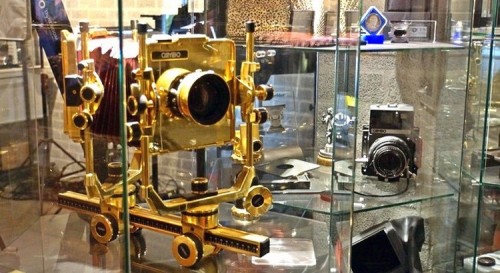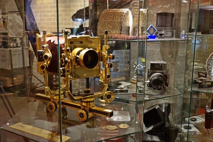Eine goldene Cambo aus dem goldenen analogen Zeitalter. Verstellbare Fachkameras gibt es immer noch im Liefersortiment von Cambo