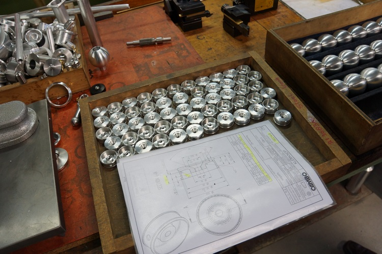Gleich neben der Montage befindet sich ein grosse Teilelager – gebundenes Kapital, das da schlummert, aber unumgänglich ist, um in Kleinserie oder sogar auf Einzelbestellung produzieren zu können. Die Menge an Spezialteilen in allen Materialien ist kaum vorstellbar. Man braucht eine tiefverwurzelte Produktekenntnis, um hier auf Anhieb sagen zu können, welches Teil für welches Produkt ist und was noch dazu gehört, damit es montiert werden kann. Und wenn einmal in der Schublade keines mehr hat, dann sagt man dem digitalen Produktionsroboter, er solle bitte schön wieder einige davon machen – über Nacht, wenn’s geht …