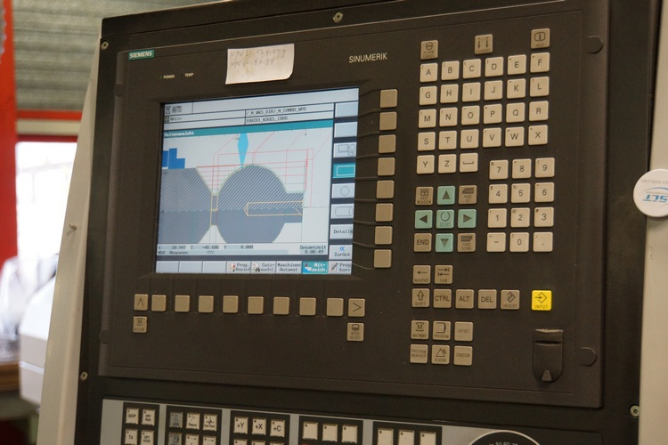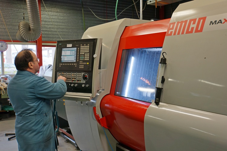 Blick in die Produktionshalle des Werkes. Numerische Bearbeitungs-Automaten stehen dort, wo früher manuell gedreht und gefräst wurde