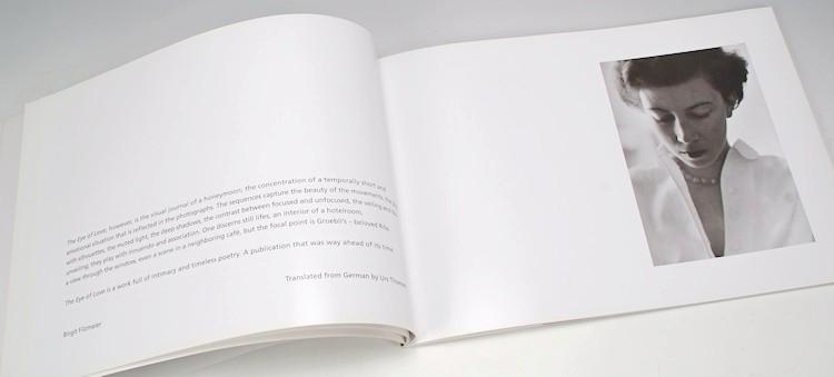 Wenn man sich mit dem Schaffen von René Groebli befasst und seine verschiedenen Schaffensperioden analysiert, dann fällt «Das Auge der Liebe» als eine aussergewöhnliche und hervorragende Arbeit auf. Es sind wahrscheinlich die schönsten Bilder, die René Groebli je realisiert hat – nicht nur die Bilder selbst, sondern die Geschichte, die uns René Groebli mit dem kleinen, unscheinbar wirkenden Bildband erzählen will.